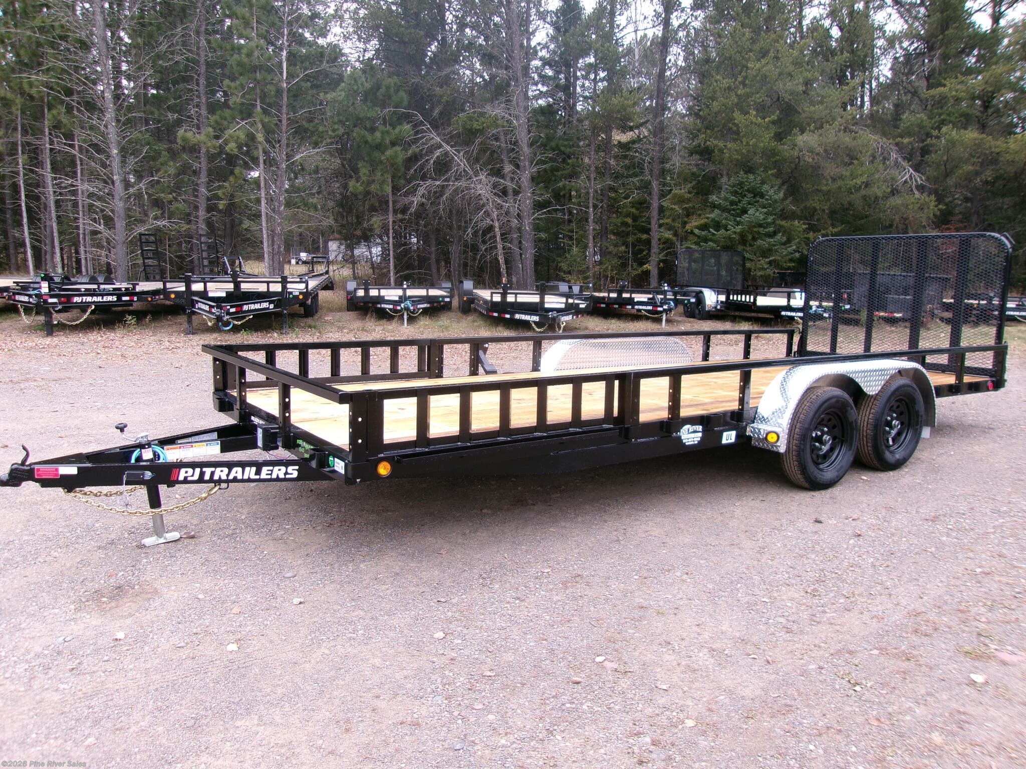 PJ Trailer's (UL) 83'' 20 Channel Utility Trailer is a double axle trailer with a fold down rear ramp. These trailers are high quality and durable. This trailer has a GVWR of 7,000lbs and a length of 20' with a width of 83''. This utility trailers comes with the standard features listed below.